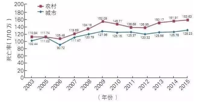 2003~2015年中國居民腦血管病死亡率變化趨勢