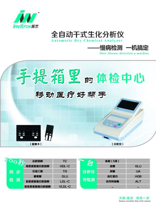 血脂血糖日常防控是根本,而大樹英杰全自動干式生化分析儀又是血脂血糖日常防控的必須工具,有大樹英杰全自動干式生化分析儀進入社區(qū)才可能為高發(fā)的心腦血管疾病筑起一道防護欄!讓身邊的朋友遠離心腦血管疾。