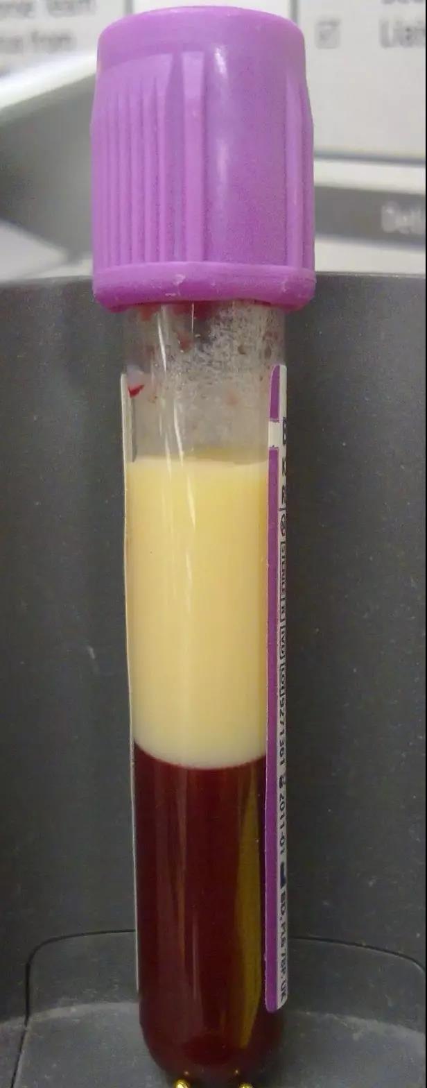 常有人將血脂與甘油三酯視為一體,實(shí)際上,甘油三酯(TG)僅是血脂的一種,血脂還包括其他物質(zhì)如膽固醇等。當病人的血甘油三酯特別高(顆粒大、密度低的脂蛋白過(guò)多)時(shí),血液會(huì )呈乳白色,將這種血靜置一段時(shí)間后,血的表面會(huì )形成厚厚的一層奶油樣物質(zhì),這便是化驗單上報告的所謂的“甘油三酯”。